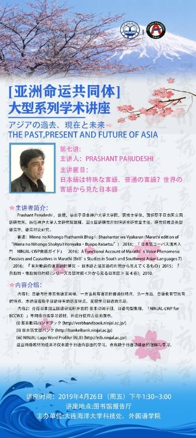 PRASHANT PARUDESHI 教授 | 日本國立國語研究所 | 語言學(xué)研究 | 4月26日 星期五 | 13:30~15:00 |