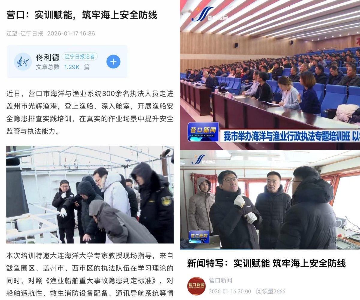 近日,遼寧日報·遼望客戶端及營口廣播電視臺對我校船員培訓學院承辦的“營口市海洋與漁業(yè)行政執(zhí)法業(yè)務能力提升專題培訓班”進行了報道。本次培訓共有當地300余名漁業(yè)行政執(zhí)法人員參加,圍繞當前漁業(yè)安全生產的核心任務,采取“理論授課+實操訓練”的模塊化教學模式,著力提升執(zhí)法隊伍的專業(yè)素養(yǎng)和履職能力。