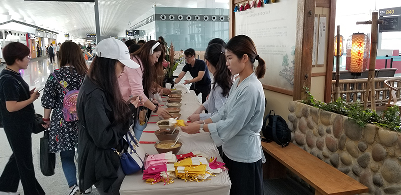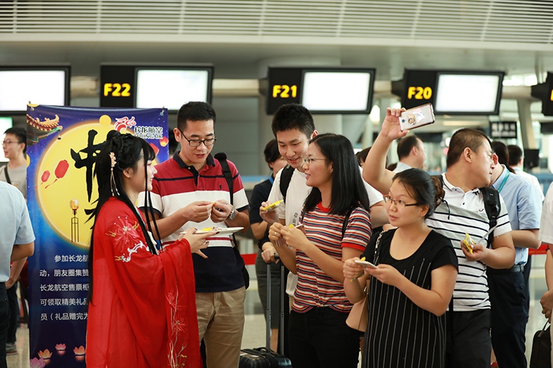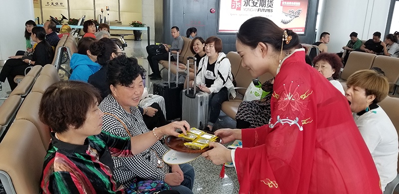 為迎接中秋、國慶雙節的到來,豐富和活躍節日期間航站樓文化氛圍,提升旅客候機體驗,2018年9月21日,航站區中心聯合“交通之聲”FM93電臺、浙江長龍航空有限公司以及駐場商戶以“穿越千年的中秋對話”為主題,在T3航站樓出發層開展中秋傳統文化展示活動。活動除了豐富多彩的文化表演外,現場還向旅客展示了茶道、香道的手工演繹,同時工作人員身著漢服扮演“嫦娥”為現場參與活動的旅客送上精美的小禮物,并邀請旅客免費品嘗中秋月餅,進一步活躍了現場的活動氣氛。此次活動分別從越劇、香道、茶道、漢服這四個“千年”文化元素中弘揚傳統文化、傳承中華美德,吸引旅客駐足觀賞,為機場文化建設和品質提升增加一抹亮色。