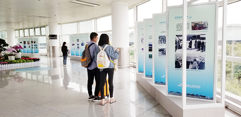10月1日,航站區管理中心在T1、T2連廊處舉辦“杭州機場歷史回顧圖片展”,此次圖片展共展出51幅照片,配以文字的形式描繪了杭州機場從解放前發展至今的歷程,記錄了杭州機場在各級黨委及政府的帶領下,在全體干部員工的共同努力下茁壯成長,一步一步發展為國內一流機場,成為名符其實的浙江省門。此次展覽將持續到今年年底,除了圖片展示外,展覽還制作了具有機場特色的門頭及地貼,為此次展覽增添了亮色,吸引旅客駐足觀賞。(航站區中心 朱偉)