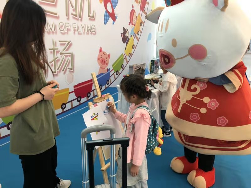 六一兒童節(jié),在T1航站樓隔離區(qū)外9號(hào)門旁組織開展了“夢(mèng)想起航,童心飛揚(yáng)”兒童節(jié)文化活動(dòng)。活動(dòng)現(xiàn)場(chǎng),“星際迷航”、“DIY彩繪飛機(jī)”等一系列航空趣味互動(dòng)活動(dòng)吸引了大批小朋友和家長(zhǎng)的積極參與,可愛的“福小豬”人形玩偶與小朋友們一起做游戲互動(dòng),提前慶祝六一兒童節(jié),現(xiàn)場(chǎng)不時(shí)傳來孩子和家長(zhǎng)們的歡呼聲。活動(dòng)旨在通過旅客互動(dòng)活動(dòng),進(jìn)一步拉近機(jī)場(chǎng)與旅客的距離,讓旅客在旅行的起點(diǎn)感受出行的美好體驗(yàn)。