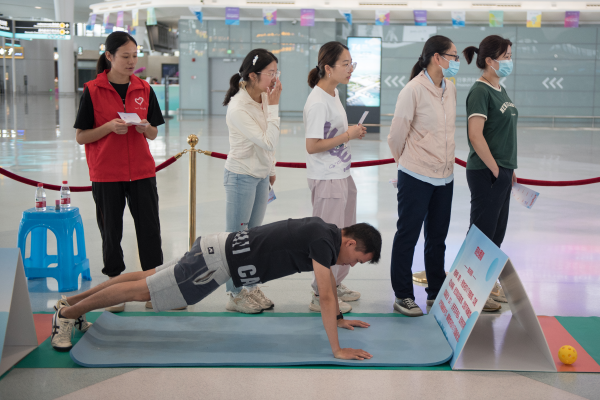 此次活動以游園會形式展開,共設(shè)有繩彩飛揚(yáng)、摸石頭過河、足上功夫、乒來乓往、核心腰腹、有的放矢、一擊必中、花式籃球等八個項目?;顒蝇F(xiàn)場,一組可愛的亞運吉祥物玩偶吸引過往旅客參加趣味運動會。旅客在主舞臺領(lǐng)取活動卡片后便可在任一活動場地進(jìn)行挑戰(zhàn),項目過關(guān)后工作人員在其活動卡片上蓋上籃球、射箭、足球、龍舟等杭州亞運賽事logo圖章,旅客可憑借最終圖章數(shù)量在主舞臺領(lǐng)取行李箱、茶壺等獎品?;顒舆M(jìn)一步營造了濃郁的喜迎亞運氛圍,弘揚(yáng)拼搏奮進(jìn)的體育精神,助力全民迎亞運。
