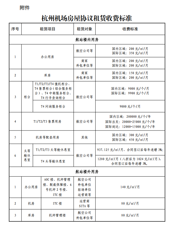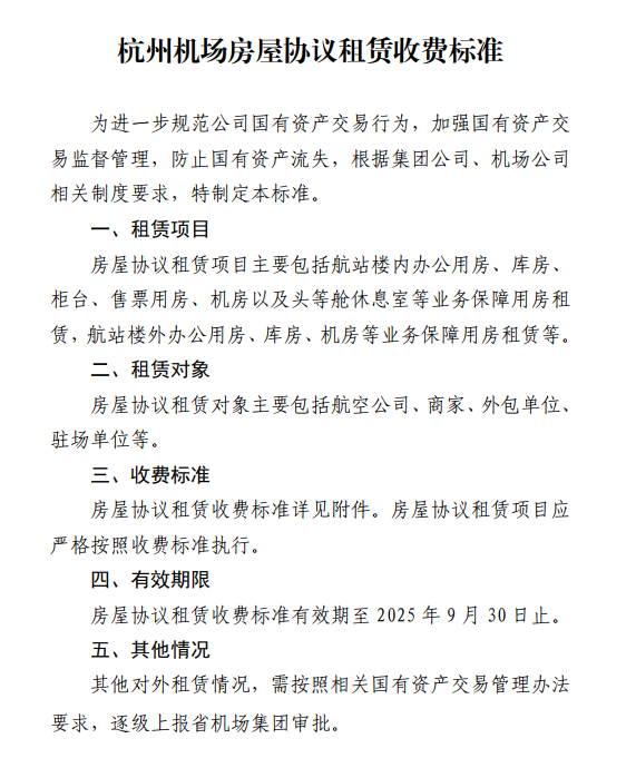 杭州機場房屋協議租賃收費標準