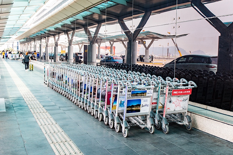 目前,大型手推車約3500輛,最大承重100kg,主要放置于航站樓出發(fā)層可進出的門外,國內(nèi)、國際到達行李轉(zhuǎn)盤區(qū)域,交通中心區(qū)域。