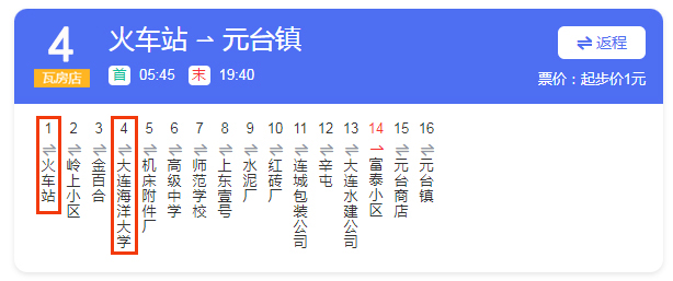 乘坐瓦房店4路或瓦房店4路孫屯公交車:火車站 → 大連海洋大學(xué)